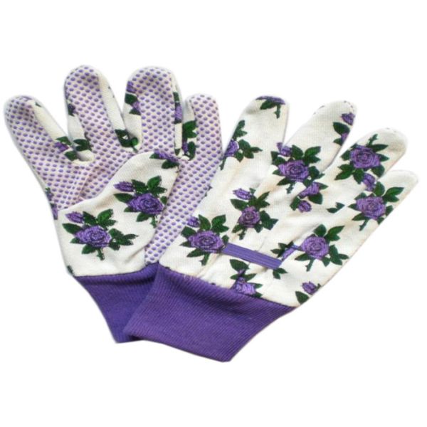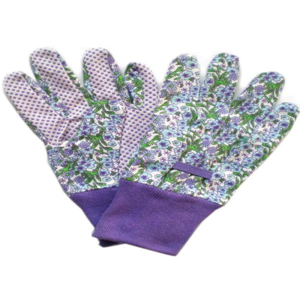 Beautiful Purple Design Printed Purple Cotton Drill Garden Gloves With Knit Wrist